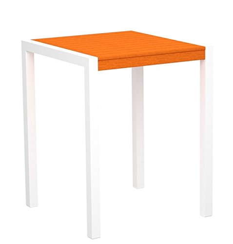 Sturdy modern table features convenient counter level height and comes in a vivid tangerine colorHas the "look" of wood but is made from recycled materials, so you can kick back, relax and feel good about your purchaseSuper sturdy and built to last, even in strong winds you won't have to worry about your chair blowing awayResistant to all types of weather conditions including rain, snow, salt water, sun and iceContains UV-inhibited pigment systems that reduces fadingDoes not absorb moisture and will not rot, splinter or crackCare instructions: wash with soap and waterSome assembly requiredFor indoor or outdoor use20-year limited residential warranty; 1-year limited commercial warrantyMade in the USA by POLYWOODColor: tangerine with satin white frameDimensions: 37"H x 29.75"W x 29.75"DMaterial(s): post-consumer bottle waste, such as milk and detergent bottles/18-8 commercial grade stainless steel hardware/aluminum*All post-consumer materials go through an intense sanitation process Note